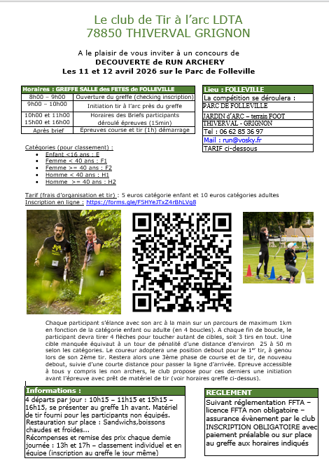 DECOUVERTE de RUN ARCHERY, les 11 et 12 avril 2026 sur le Parc de Folleville - 78850 THIVERVAL-GRIGNON